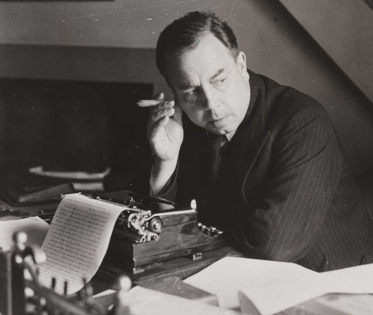 Published December 28, 2016 at 1234 × 1045 in J_B_Priestley_at_work_in_his_study,_1940._(7893553148).
